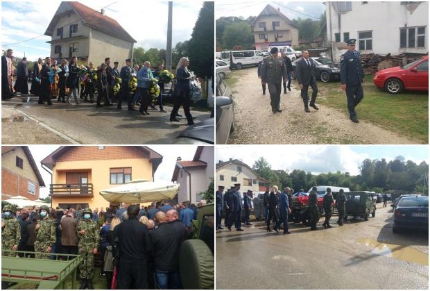 Posle služenja opela u dvorištu, dugačka kolona uputila se ka lokalnom groblju gde će počivati nastradali pilot koji je na večni počinak ispraćen uz vojne počasti.