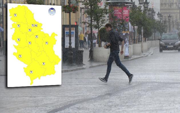 Na snazi je žuti meteoalarm na teritoriji cele Srbije jer se očekuju jaki pljuskovi sa grmljavinom. Za samo 24 časa očekuje se pad temperature za pet do osam stepeni.