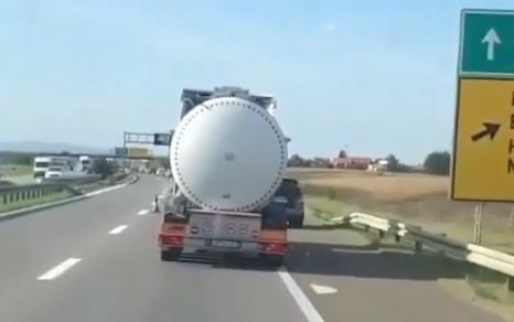Naime, vozač džipa je odlučio da pretiče cisternu narušavajući bezbednost u saobraćaju i praveći ozbiljan prekršaj.