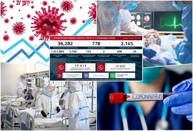 U Srbiji je do sada od korona virusa ukupno obolelo 36.282 osoba, preminulo je 778, a testirano 1.241.864 ljudi