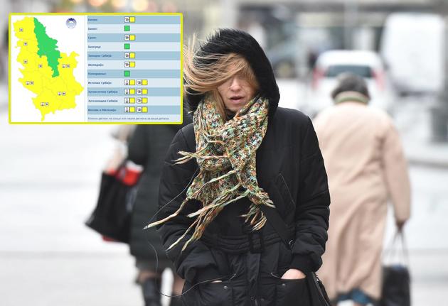Zbog toga će u Srbiji sutra biti na snazi žuti meteo alarm i to u Bačkoj, Sremu, Zapadnoj Srbiji, Šumadiji, Istočnoj Srbiji, Jugoistočnoj Srbiji, Jugozapadnoj Srbiji i na Kosovu i Metohiji.