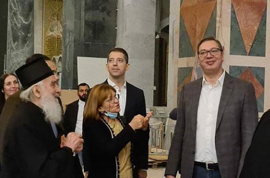 "Sa Njegovom svetošću patrijarhom srpskim gospodinom Irinejom obišao sam završne radove na unutrašnjem uređenju Hrama Svetog Save", objavio je predsednik Vučić na svom zvaničnom Instagram profilu.