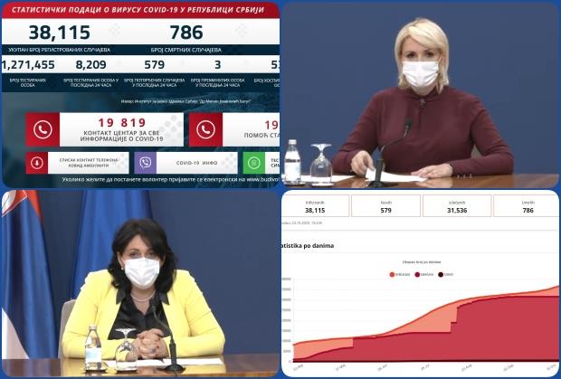 I danas je u Srbiji zabeležen dramatičan skok broja novozaraženih - čak 579, a tri pacijenta su preminula.