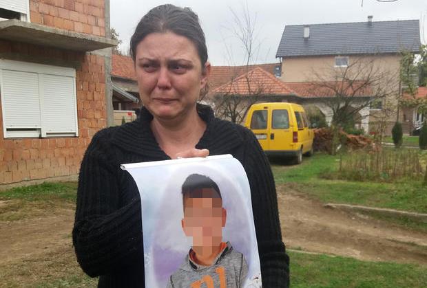 Ispred porodične kuće u kojoj živi petočlana porodica dečakova majka Slađana u suzama pokazuje sinovljevu sliku.