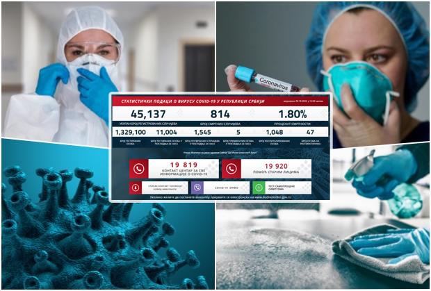 BEOGRAD - U poslednjih 24 sata u Srbiji je koronom zaraženo 1.545 ljudi a nažalost 5 pacijenata je preminulo, na respiratorima je 47 obolelih.