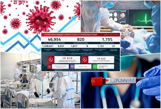 Prema podacima Ministarstva zdravlja, od poslednjeg preseka testiran je 9.531 uzorak. Od početka epidemije u Srbiji su zaražene ukupno 46.954 osobe, od kojih je 820 preminulo.