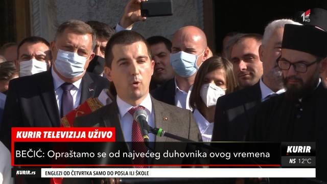 Predsednik Skupštine Crne Gore Aleksa Bečić kazao je na sahrani mitropolita crnogorsko-primorskog Amfilohija da se opraštamo od jednog od najvećih duhovnika i teologa ovog vremena.