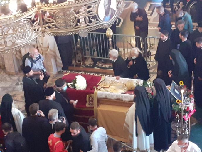Kovčeg sa posmrtnim ostacima mitropolita Amfilohija, posut je, nakon je položen u kriptu hrama u Podgorici zemljom sa Kosova i Metohije i iz Jasenovca i Morače, potvrđeno je Kuriru.