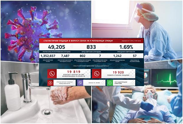 U Srbiji je u poslednja 24 sata testirano 7.487 građana, od kojih je 802 pozitivno.