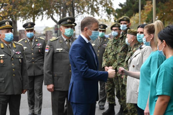 -Danas ste videli novu opremu i koncentratore kiseonika, nove ležajeve i nove monitore koji su ugrađeni u sisteme intenzivne nege, ali i u druge bolničke sisteme i imaćete priliku da vidite kako se oni već u narednim danima koriste kako bi građani Srbije dobijali najbolje moguće lečenje u vojnom sistemu zdravstva – rekao je Stefanović. Ministar Stefanović obišao je danas i Vojnomedicinski centar Karaburma koji je, kako je naveo, u kovid sistemu od aprila meseca i gde trenutno leži više od 80 pacijenata. - Hoćemo da istaknemo sistem vojnog zdravstva, jer ljudi koji ovde rade danonoćno kičma su našeg sistema odbrane od ove opake bolesti, ali takođe i kičma sistema vojnog zdravstva - poručio je ministar odbrane. On je zahvalio svima koji naporno rade i na izgradnji novih bolnica u Batajnici i Kruševcu i na unapređivanju kapaciteta u postojećim vojnim bolnicama. - Drago mi je da sam danas imao priliku da upoznam neke od sjajnih lekara i medicinsko osoblje i trudiću se i da zajedno sa svojim timom učinim sve što je moguće da njihov posao olakšam, da oni imaju uvek dovoljno sredstava, da imaju dovoljno lekova i da možemo zajednički da se izborimo sa ovom bolešću, a građane još jednom molim za dovoljno discipline i da poštuju ono što lekari kažu - rekao je ministar Stefanović. Upravnik Vojne bolnice Novi Sad pukovnik dr Dragan Koruga naglasio je da je ta bolnica od jula do septembra lečila 202 pacijenta inficirana virusom kovid 19, da je osoblje zbrinjavalalo zaražene pacijente na nekoliko lokacija u Vojvodini, ali i da su pružali svu neophodnu pomoć u privremenoj bolnici u Novom Pazaru. - Za naredni period smo obezbedili svu potrebnu opremu i lekove i imamo odličnu saradnju sa Upravom za vojno zdravstvo, gradskom upravom i Kliničkim centrom Vojvodine. Ta saradnja je neophodna da bi sve ovo funkcionisalo - rekao je pukovnik Koruga. Prema rečima komandanta kovid bolnice Vojnomedicinskog centra "Karaburma" pukovnika dr Iva Udovičića da je u ovoj bolnici u intenzivnoj nezi 14 pacijenata od toga je 10 na respiratorima. Mi smo ovde od početka epidemije, praktično od 1. aprila i nijednog trenutka se nismo zatvarali - podseća pukovnik Udovičić i ističe da današnja poseta ministra odbrane svima u vojnom zdravstvu mnogo znači, jer računaju na njegovu dalju pomoć i podršku. Današnjim obilascima vojnih kovid bolnica u Novom Sadu i Beogradu prisustvovao je i načelnik Uprave za vojno zdravstvo general-major dr Uglješa Jovičić.
