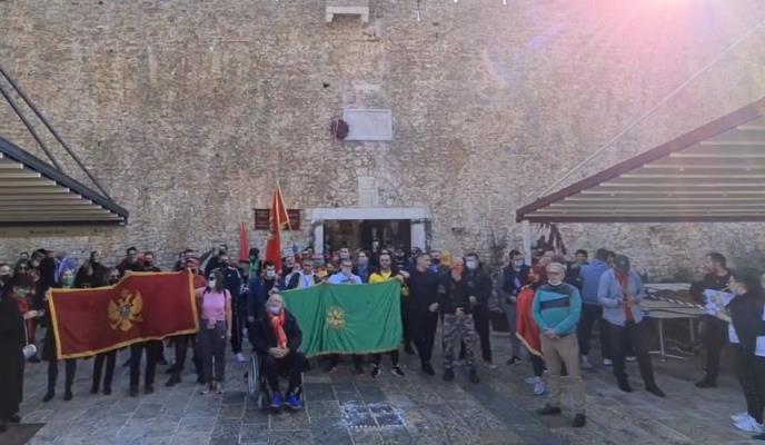 BUDVA - Protestni skup u Budvi protiv najavljenog polaganja venca Ambasade Srbije u Crnoj Gori na spomen-ploču srpskim oslobodiocima završen je prekrivanjem ploče crnogorskom zastavom, preneo je portal RTCG.
