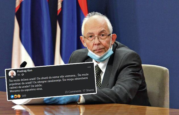 Epidemiolog i član Kriznog štaba Predrag Kon danas je ponovo objavio alarmantnu poruku na svom profilu na Fejsbuku.