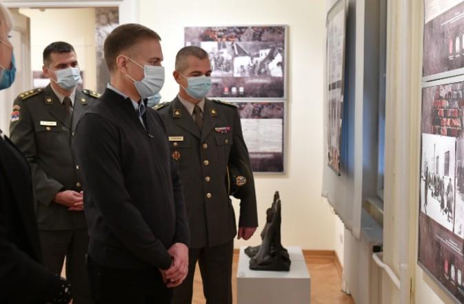 Ukazujući na neke od najznačajnijih događaja iz oslobodilačke borbe u Srbiji tokom Drugog svetskog rata, ministru Stefanoviću izložbenu postavku u Velikoj i Maloj galeriji Doma Vojske Srbije u Beogradu predstavila je dr Marijana Mraović iz Vojnog arhiva.