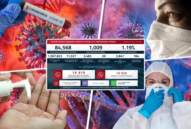 Ukupno je do sada korona virusom zaraženo 84.568 osoba. Do sada je u Srbiji testirano 1.507.822 ljudi.