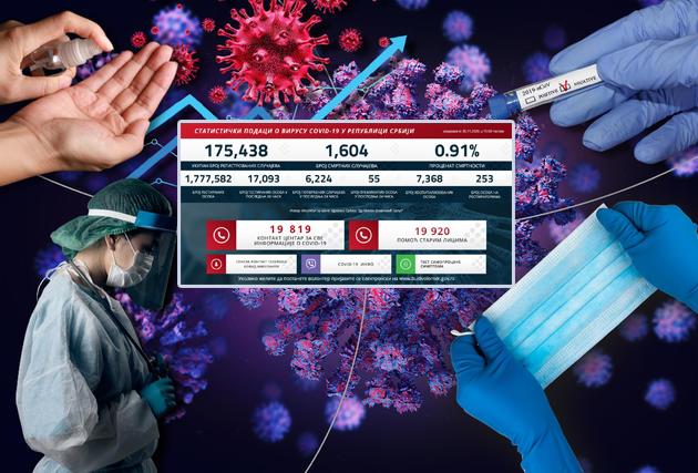 U Srbiji je u poslednja 24 sata na korona virus testirano 17.093 građana, od kojih je pozitivno 6.224.
