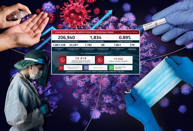 U Srbiji je u poslednjih 24 sata testirano 22.497, a od toga je registrovano 7.782 novozaraženih.