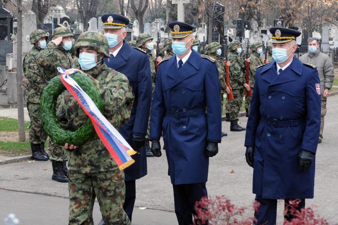 Delegacija predvođena brigadnim generalom Miroljubom Čupićem, u okviru Novog groblja položila je vence kraj Spomen-kosturnice vojnika stradalih u srpsko-turskim ratovima i Srpsko-bugarskom ratu, Spomen-kosturnice branilaca Beograda u Prvom svetskom ratu i Spomenika oslobodiocima Beograda u Drugom svetskom ratu.