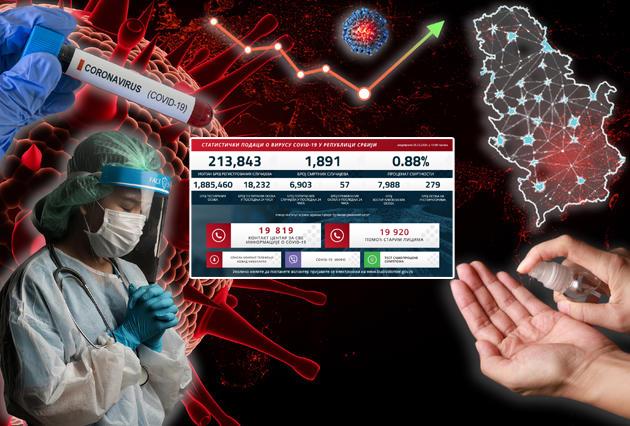 BEOGRAD - U Srbiji je u poslednjih 24 sata testirano 18.232 građana, a od toga je pozitivno 6.903. Nažalost preminulo je 57 ljudi, a na respiratorima je 279 pacijenata.
