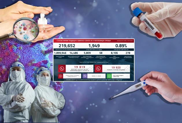 U Srbiji je u poslednja 24 sata na korona virus testirano 14.486 građana, od koji je 5.809 pozitivno.