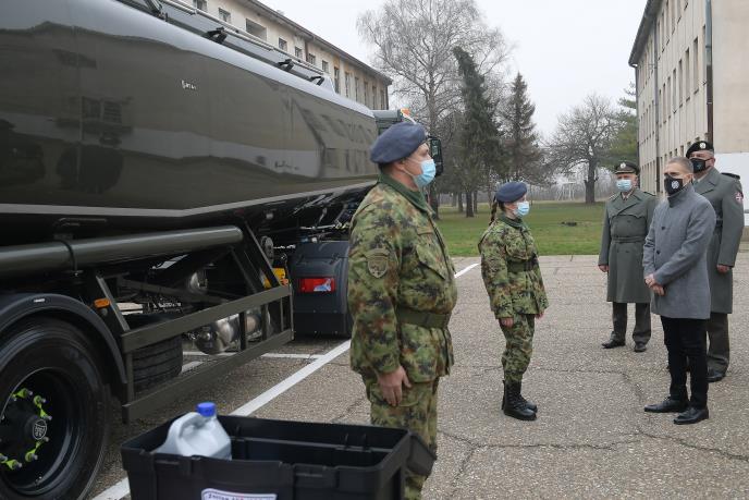 NOVIH 27 VOZILA ZA LOGISTIKU VOJSKE SRBIJE: Stefanović obišao kasarnu u Pančevu