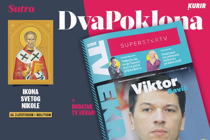 Sutra, uoči slave, Kurir poklanja IKONU SVETOG NIKOLE S ZLATOTISKOM I MOLITVOM i dodatak TV Ekran, a u subotu, 19. decembra, na dan slave, u Kuriru vas čeka luksuzni DRVENI STALAK S LIKOM SVETOG NIKOLE U ZLATOTISKU.