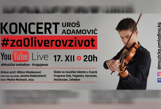 U četvrtak, 17. decembra, na Oliverov rođendan, mladi violinista Uroš Adamović održaće humanitarni onlajn koncert. Koncert će biti emitovan na YouTube kanalu Muzičke omladine-Kragujevac, a kako zbog propisanih epidemioloških mera u sali nije moguće prisustvo publike, na njihovom mestu će se naći plišani medvedići. Ideja je da plišani medvedići, koje će donirati institucije i organizacije iz Kragujevca, nakon koncerta budu prodati putem humanitarne licitacije, gde bi oni koji otkupe mede novac uplaćivali direktno na Oliverov račun, otvoren pri organizaciji Budi human, a po izvršenoj uplati, igračke će im stići na kućnu adresu.