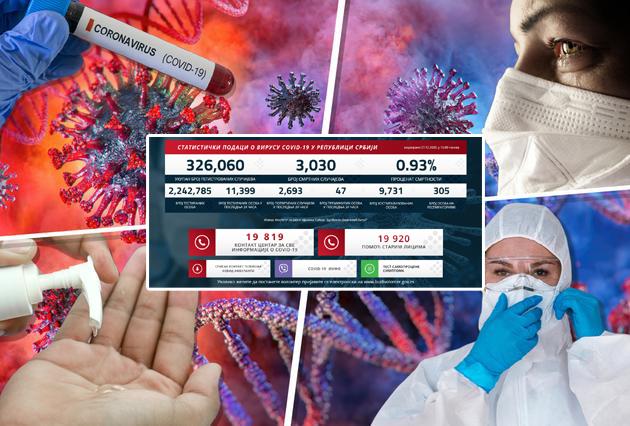 U Srbiji je u poslednja 24 sata na korona virus testirano 11.399 građana, od kojih je 2.693 pozitivno na virus.