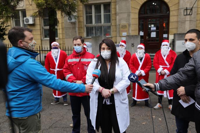 Ispred instituta “Dr Milan Jovanović Batut” Tamara Tomašević i Dejan Jovanović su zahvalili kompaniji CarGo na akciji doniranja obroka medicinskim radnicima i svim građanima su poželeli srećne i zdrave novogodišnje i božićne praznike.