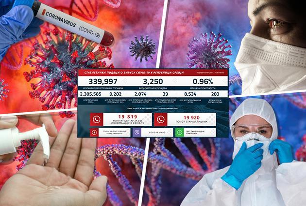 Od početka epidemije u Srbji je zaraženo 339.997 osoba od kojih je 3.250 preminulo. Do sada je testirano 2.305.585 osoba. Procenat smrtnosti je 0,96 odsto.