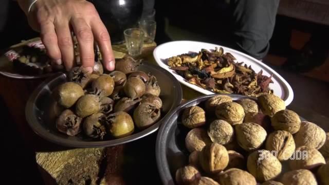 Iako šumski čovek nikada nije bio u radnom odnosu, niti mu je na žiro račun nekada legla plata, a skoro da nikad nije ni napuštao rodno mesto, osim do obližnje Kuršumlije, nas je kraj odžaklije uz živu vatru sačekala lepa gozba: suvo meso, orasi, smokve i drugi plodovi prirode.