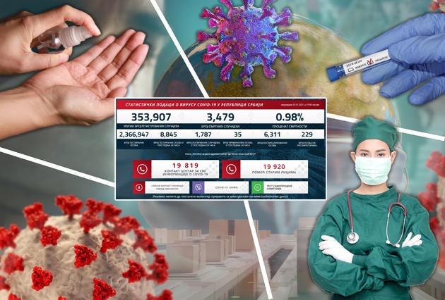 U poslednja 24 sata u Srbiji je na korona virus testirano 8.845 osoba dok je njih 1.787 bilo pozitivno.