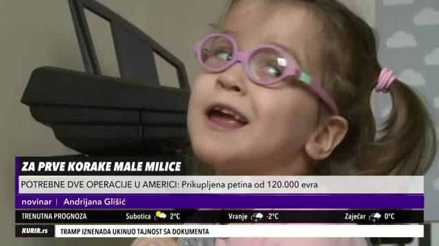 Pre toga je za ovu devojčicu sa dijagnozom cerebralne paralize neophodno sakupiti 120.000 evra, a do sada je odvojena tek jedna petina. Da podsetimo, Milica je rođena u trideset i drugoj nedelji a usled komplikacija na rođenju došlo je do gubitka kiseonika i reanimacije.