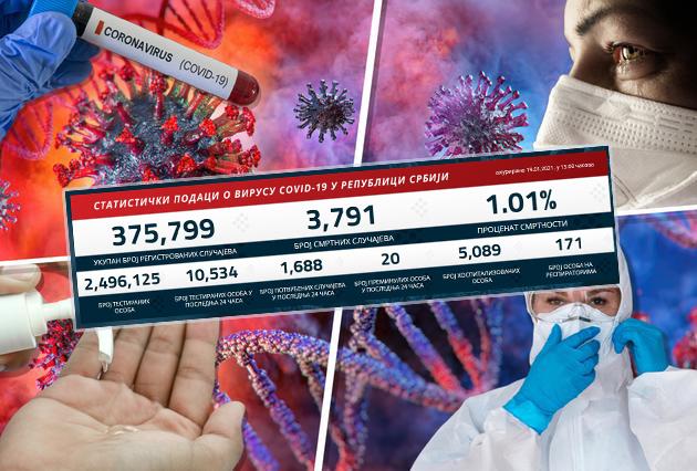 U Srbiji je u poslednja 24 sata na korona virus testirano 10.534 građana od kojih je 1.688 pozitivno.