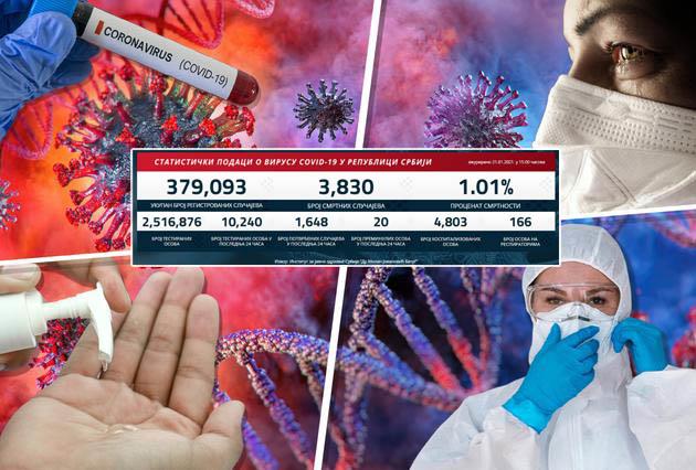 Od početka pandemije u martu prošle godine, od korona virusa u Srbiji je obolelo 379.093 osoba, dok je preminulo 3.830, a procenat smrtnosti je 1,01 odsto.