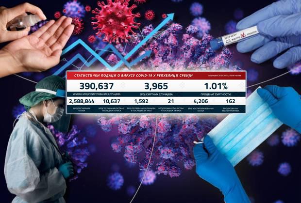 Preminuo je nažalost 21 pacijent. Na respiratorima širom zemlje trenutno su 162 pacijenata.