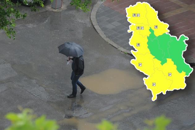 U većem delu Srbije, sem na području Beograda, Šumadije, Pomoravlja i na istoku, sutra će na snazi biti žuti meteo alarm.