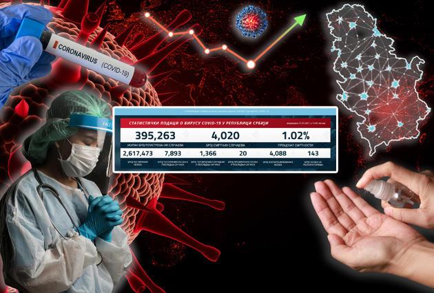 Preminuo je 20 pacijenata. Na respiratorima širom Srbije trenutno su 143 pacijenta.