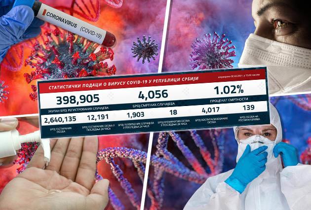 U Srbiji je u poslednjih 24 sata na korona virus testirano je 12.191 građanin od kojih su 1.903 novozaražena.