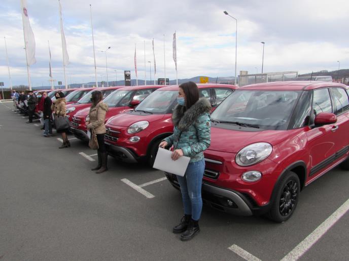Deset novih "fiata 500L" koje su dobili učesnici nagradne igre "Uzmi račun i pobedi" krenulo je danas posle svečane dodele u Kragujevcu u razne krajeve Srbije.