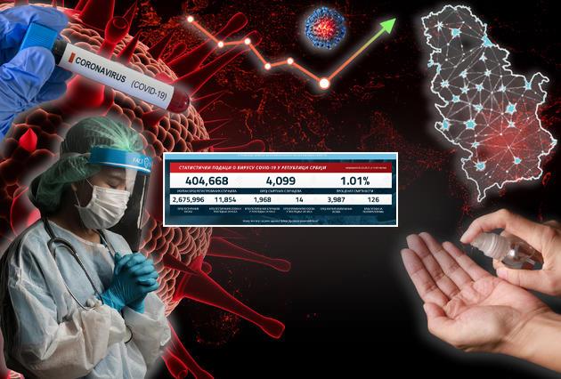 U Srbiji je u poslednjih 24 sata na korona virus testirano 11.854 građana od kojih su 1.968 novozaražena.