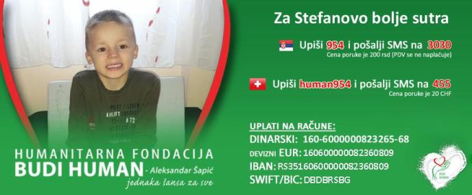 Humanitarna fondacija Budi human Aleksandar Šapić prikuplja novčana sredstva za Stefana Živanovića (2015).