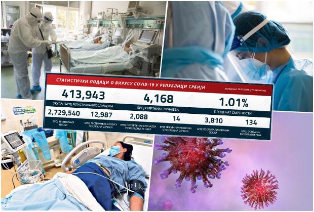 Preminulo je 14 pacijenata. Na respiratorima širom Srbije trenutno su 134 pacijenta.
