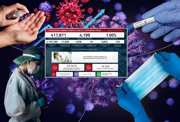 U Srbiji je u poslednjih 24 sata na korona virus testirano 11.699 građana od kojih je 1.928 novozaraženih.