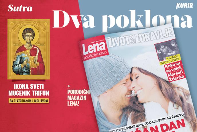 Srpska pravoslavna crkva i svi njeni vernici sutra slave Svetog Trifuna, zaštitnika bračne ljubavi i vernosti. Dnevne novineKurir poklanjaju DVA POKLONA: ikonu sa zlatotiskom i molitvom i magazin Lena.