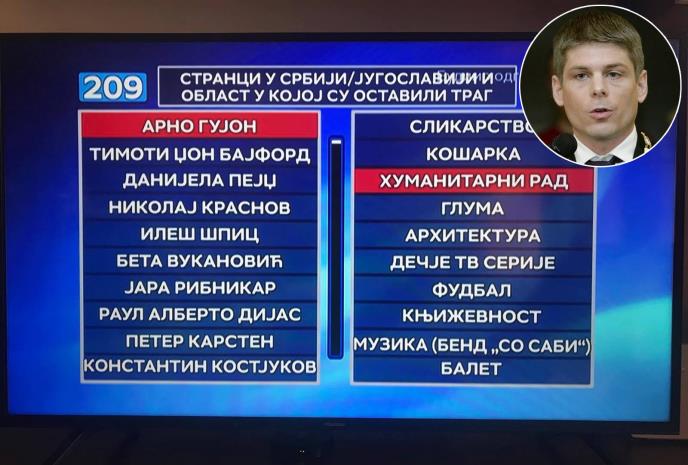 Tako je u jednoj od epizoda svoje ime na ekranu u igrici spojnica ugledao i Arno Gujon, humanitarac i direktor Uprave za saradnju s dijasporom i Srbima, te svoje oduševljenje podelio na društvenoj mreži Fejsbuk.