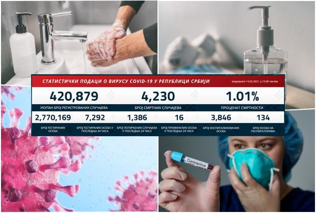 NAJNOVIJI KORONA PRESEK: Danas 1.386 novozaraženih, preminulo 16 pacijenata