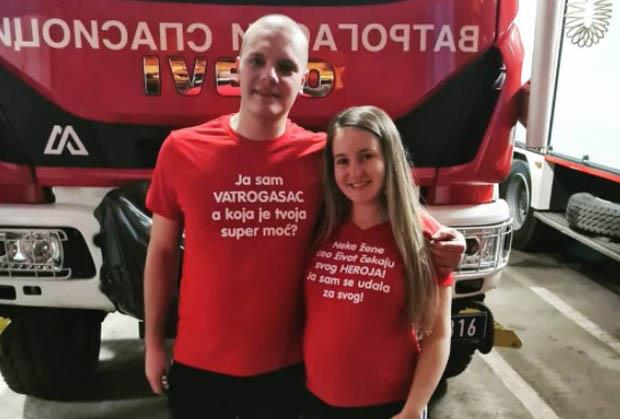 Na Milanovoj majici napisano je: "Ja sam vatrogasac a koja je tvoja super moć?", dok na majici njegove supruge piše:"Neke žene ceo život čekaju svog heroja! Ja sam se udala za svog!".