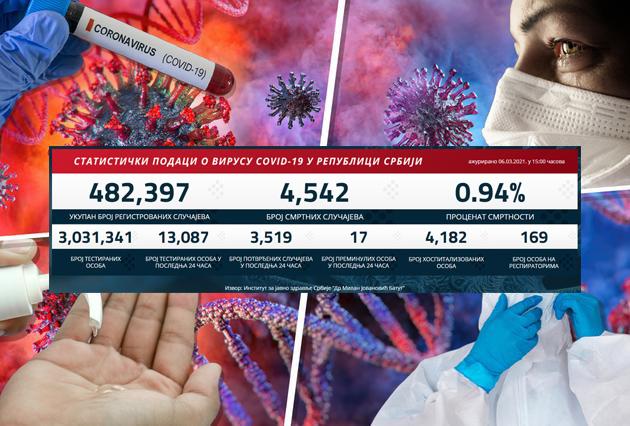 Nažalost, preminulo je 17 pacijenata. Na respiratorima u bolnicama širom Srbije trenutno se nalaze 169 pacijenata.