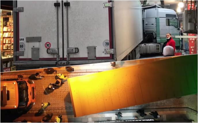 Kamion je uspeo da se provuče dalje sam, ali je prikolica do noći ostala u uskoj ulici, a uklonjena je satima kasnije.
