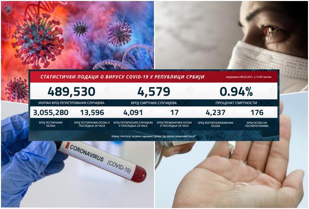 U Srbiji je u prethodnih 24 sata na korona virus testirano 13.596 građana od kojih je 4.091 novozaražena.